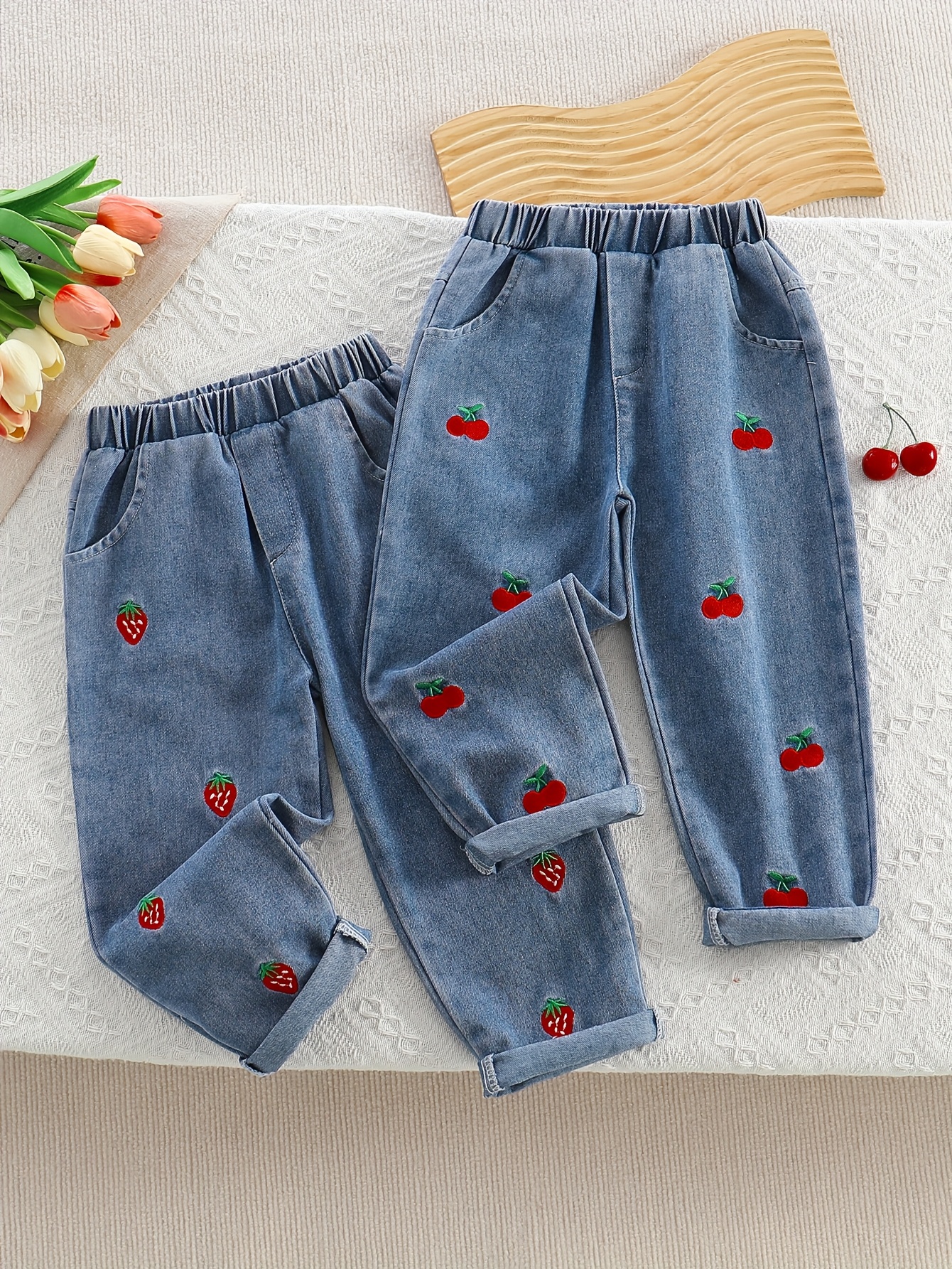 / DUO DE PANTALONES JEANS CEREZA Y FRESA 5-6